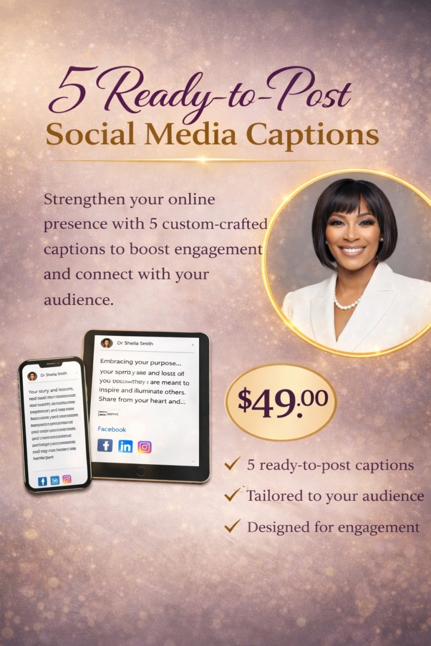 Five thoughtful, ready-to-use captions written in a natural, confident tone—so you can show up online without overthinking what to say.