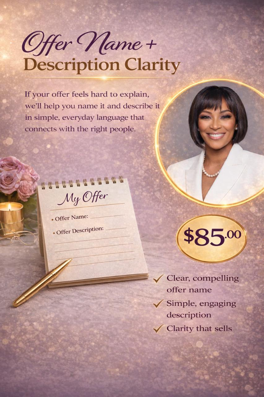 If your offer feels hard to explain, we’ll help you name it and describe it in simple, everyday language that connects with the right people.